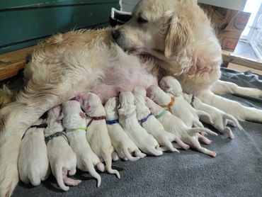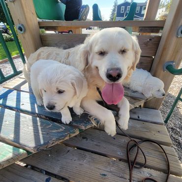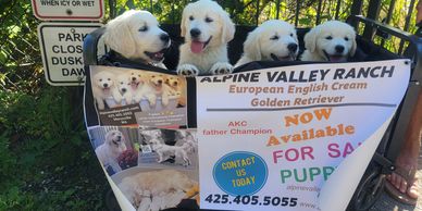 At Alpine Valley Ranch, our vision is to promote the health and well-being of European English Cream Golden Retrievers dogs through responsible breeding practices. We believe that every dog deserves a loving home, and we are committed to producing healthy and happy puppies that will make great pets for families and individuals alike.